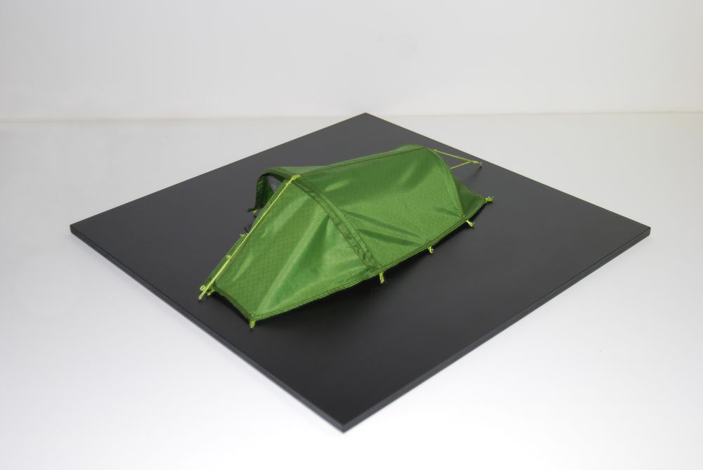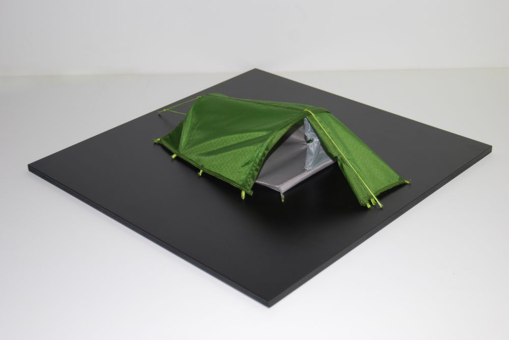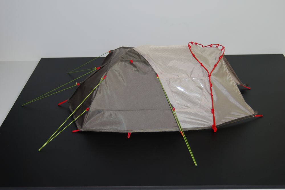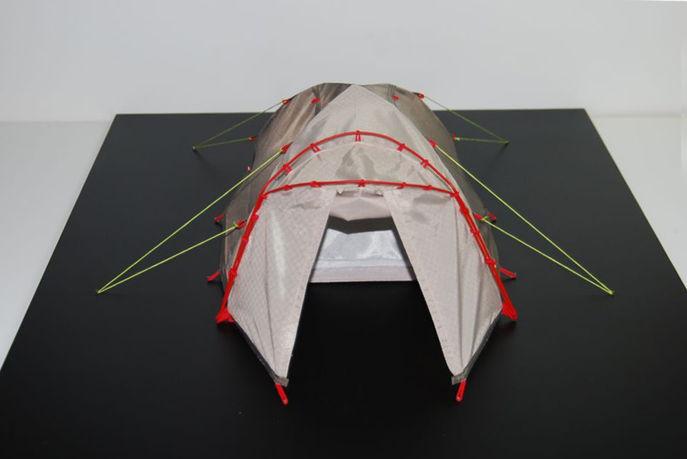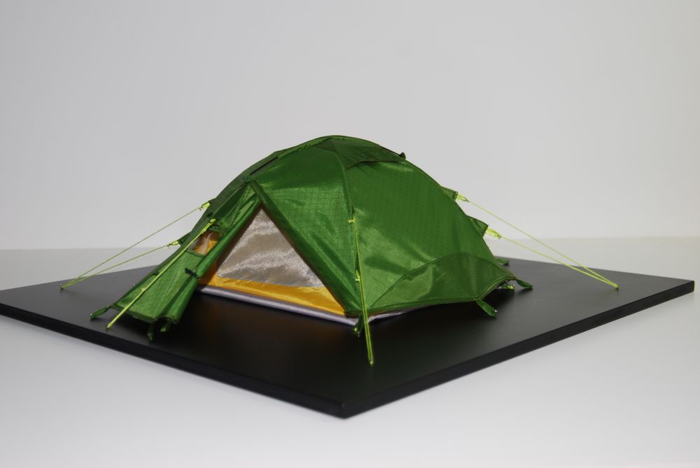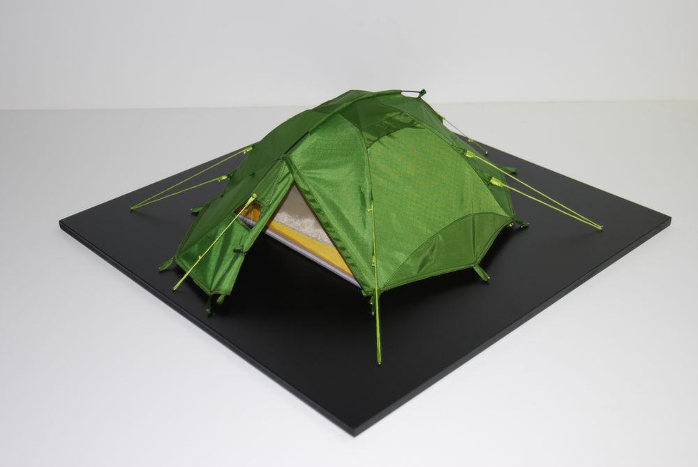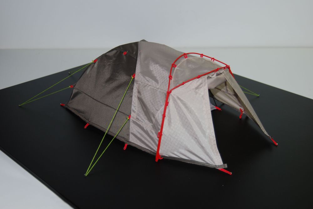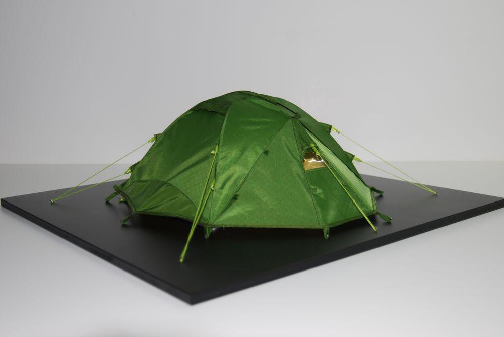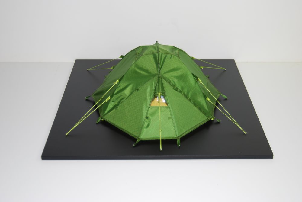 Prototypowe, wielkoskalowe modele namiotów wykonane z oryginalnego materiału.